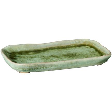 Denne aflange bakke fra Ib Laursen har et roligt og naturligt udtryk med sin dybe mosgrønne farve. Det rustikke design passer perfekt ind i en grøn og levende indretning og gør den oplagt til både funktion og dekoration.