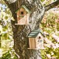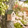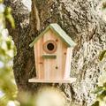 Charmerende fuglehus fra Ib Laursen i naturfarve med grønt tag. Skab liv og hygge i haven med et trygt sted for små fugle.