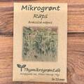 Raps mikrogrønt er et valg, der kombinerer hurtig vækst med en mild, kål-lignende smag. Mikrogrøntet udvikler sig på bare 5–8 dage og kræver ikke iblødsætning. Frøene spirer let og giver et sprødt og friskt mikrogrønt med lyse stængler og grønne blade.